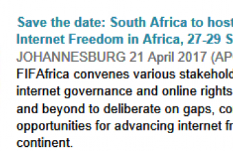 The Collaboration on International ICT Policy for East and Southern Africa (CIPESA) and the Association for Progressive Communications (APC) are happy to announce the date and location for the Forum on Internet Freedom in Africa (FIFAfrica) 2017. This year’s edition of the Forum will be held in Johannesburg, South Africa, on 27-29 September. The decision to hold the event here will contribute to expanding the…